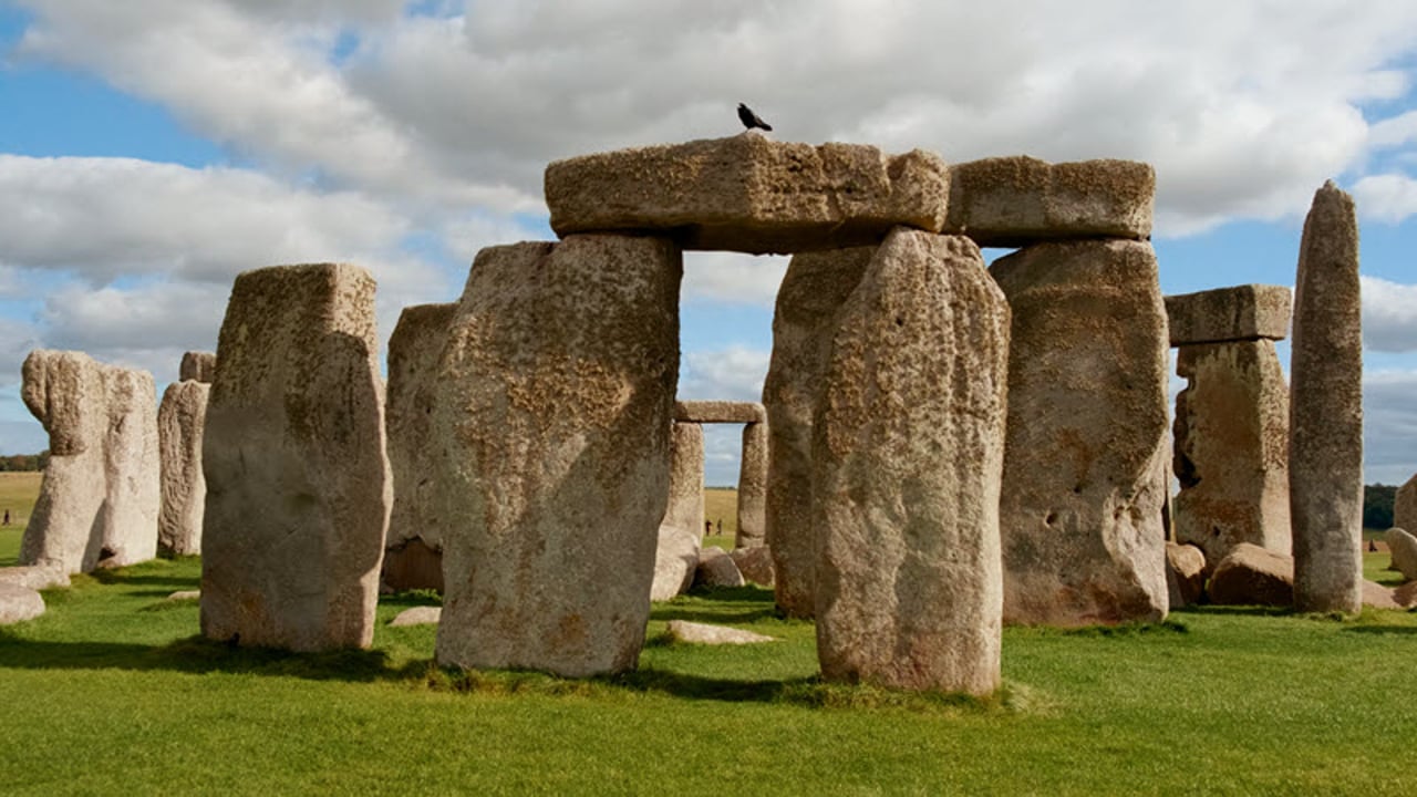 Panoramic view of Stonehenge and Wiltshire countryside in England, UK. The stone circle dates to 3000 BC and is one of the best known ancient wonders of the world and a UNESCO World Heritage Site. The stones are set within earthworks amidst the most dense complex of Neolithic and Bronze Age monuments in England, including several hundred burial mounds